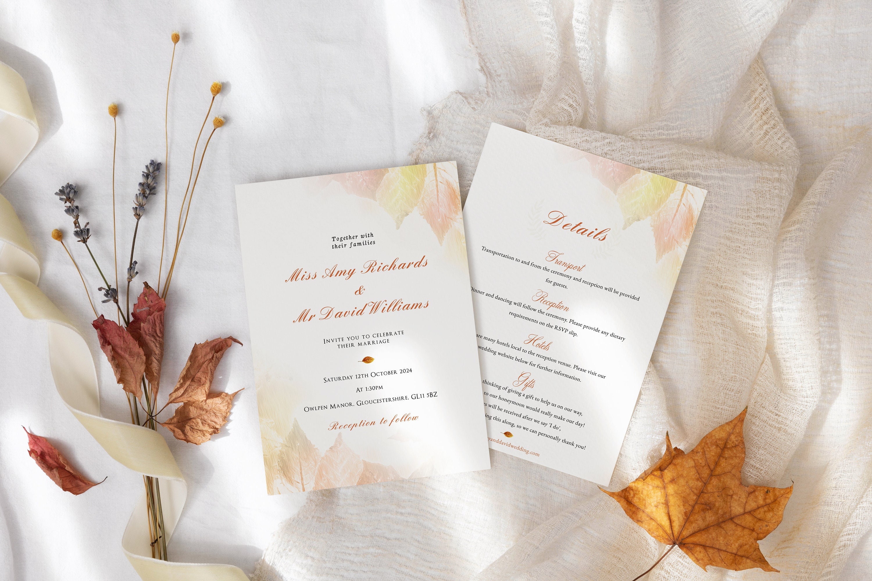 Leaves Invitation Set Diy printable wedding invitations, Leaf